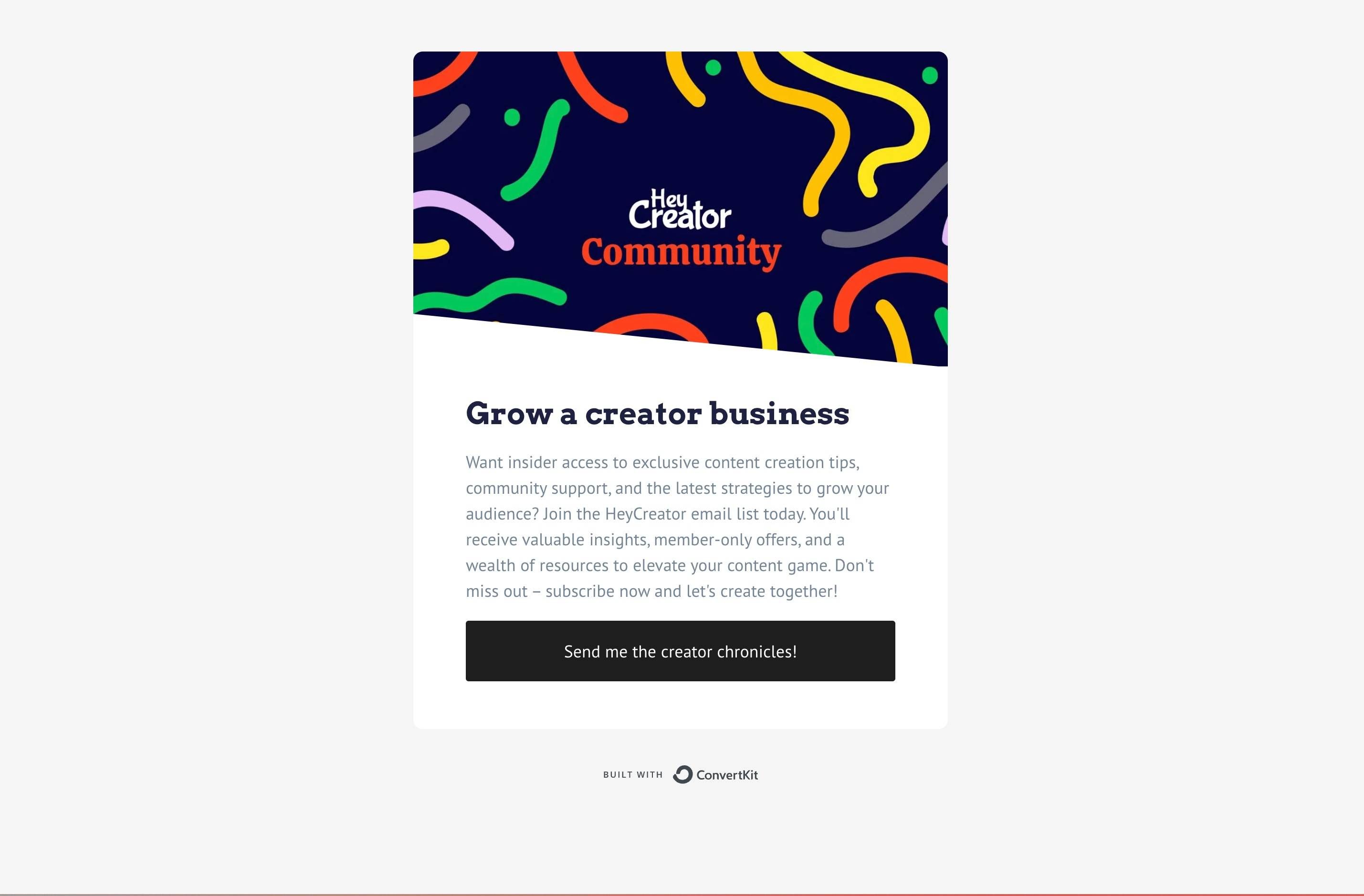 These are the best performing email signup pages for my clients. There are other landing page options in ConvertKit you can select for future designs, but start with one of these!
